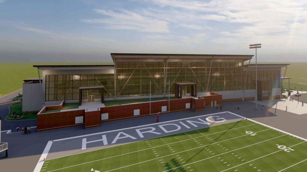 A 200-meter, multi-purpose surface track is planned for the first floor while an additional track for walking is designated for the second floor. Discussions include the inclusion of space for Esports and the Harding robotics program, among other programs. There is also potential for a student-run cafe or bistro.