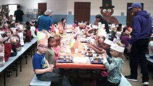 Jefferson staff and students celebrated Thanksgiving with their annual lunch. Staff and students ate a full Thanksgiving meal prepared by our amazing cafeteria staff. Thank you to the many volunteers that came to help out and to the people that donated turkeys for the meal.