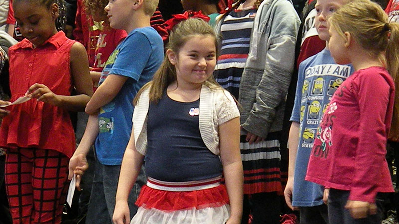 Students in grades 2 and 3 honored Veterans with a music performance on Friday, November 9th led by Miss Komsa. Students opened the concert by reciting the pledge of allegiance and listening to one of our 8th grade students perform the National Anthem. They then performed various patriotic favorites and recited poems. Thank you to Miss Komsa for preparing the concert and to all the students for their hard work in preparing for the performance.
