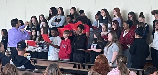 The band and choir played and sang patriotic favorites at an assembly held in their honor on November 10th.