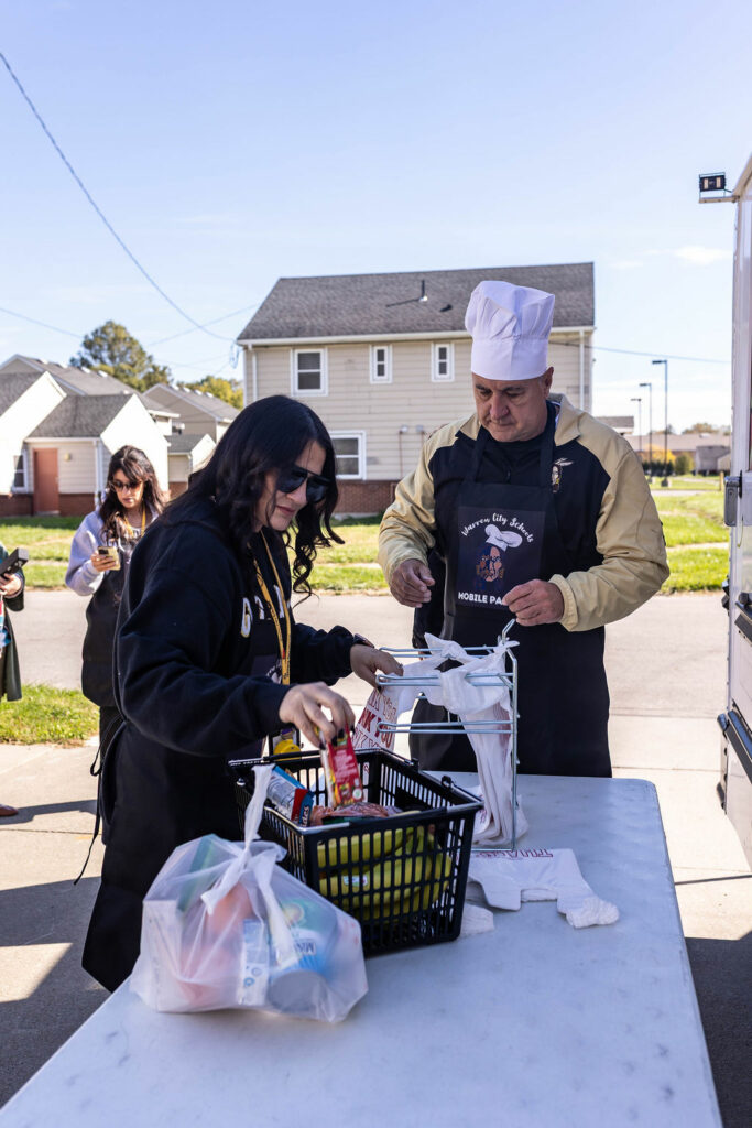 The district’s new Mobile Food Pantry rolled into Trumbull Homes on Friday, Oct. 17, 2025. Several members of the school staff assisted dozens of individuals stopped by the pantry on wheels and took the opportunity to choose food and other items available to them at no cost. The pantry will be stationed in front of the community center.