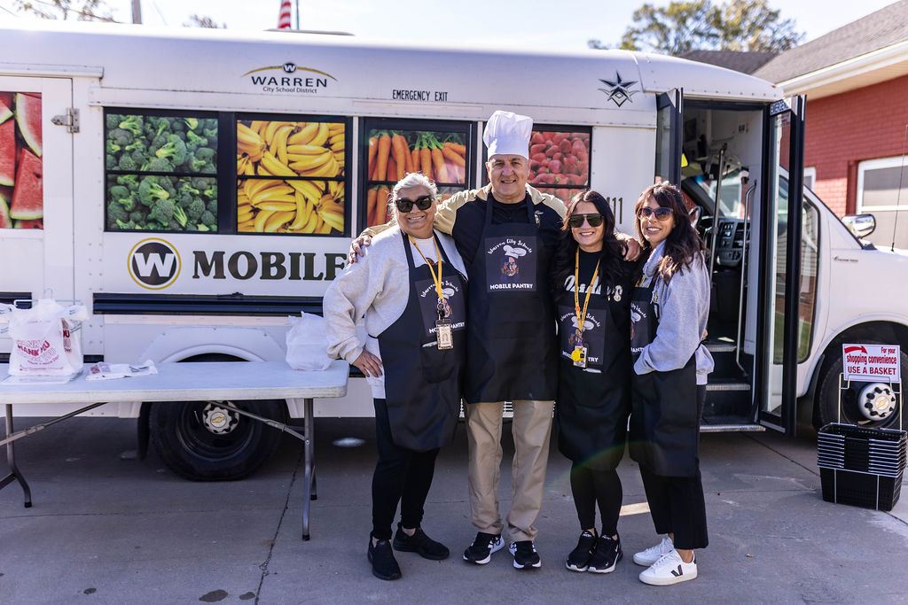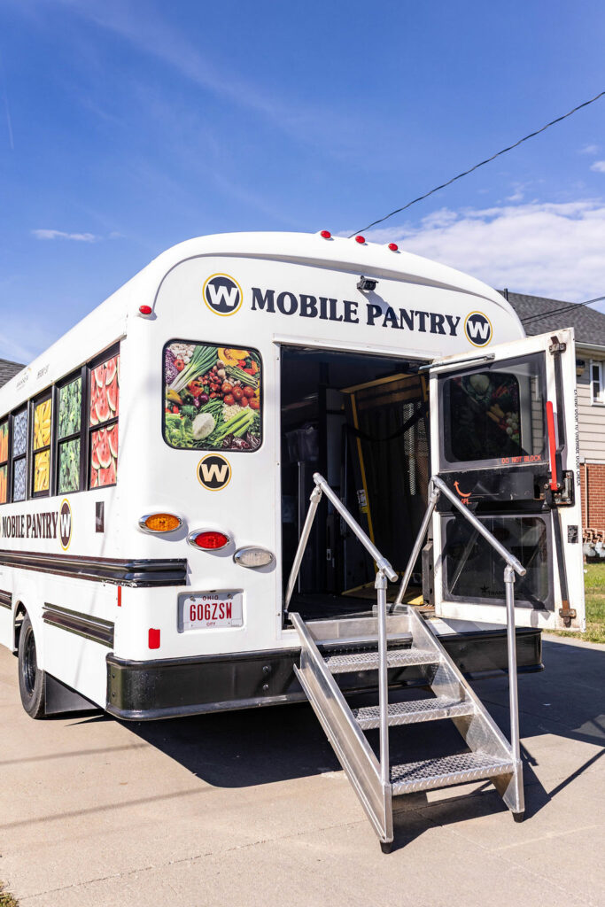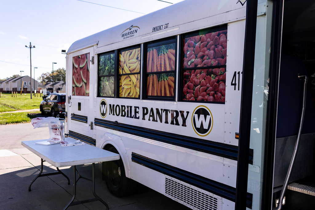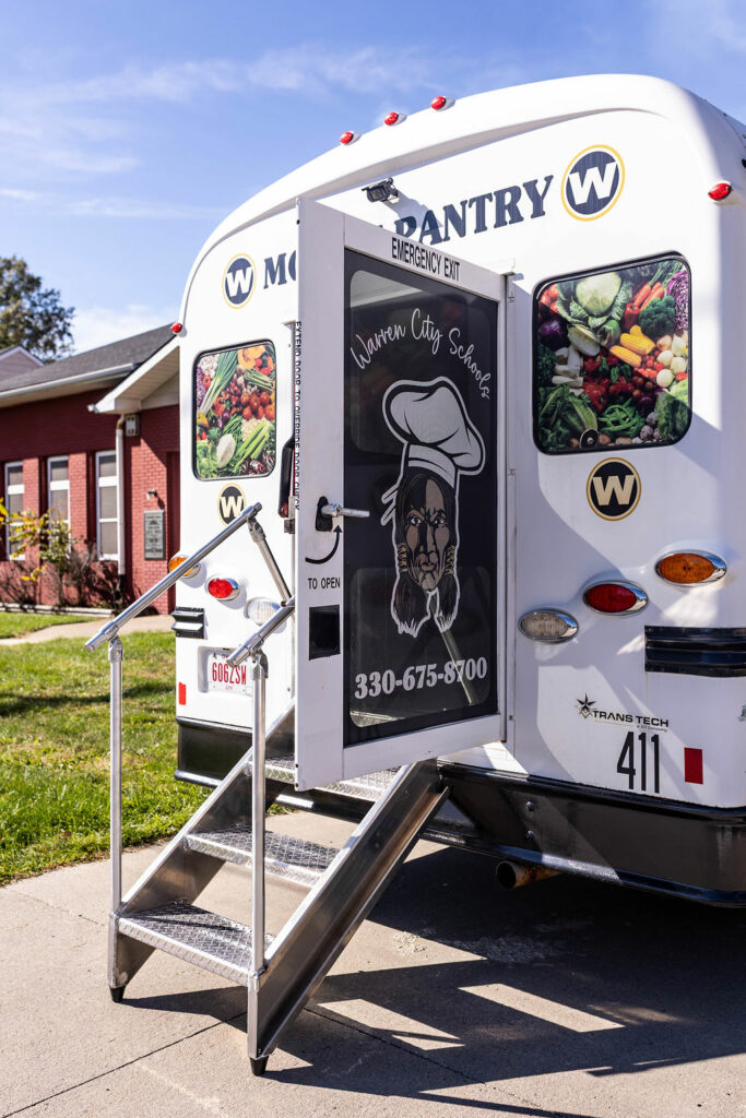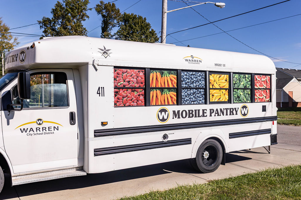 The pantry was stocked with non-perishable food items, fresh produce, and toiletries made available to the school district through various donations. The vehicle has been made available through donations from Community Bus Service, the United Way of Trumbull County and the Cafaro family.