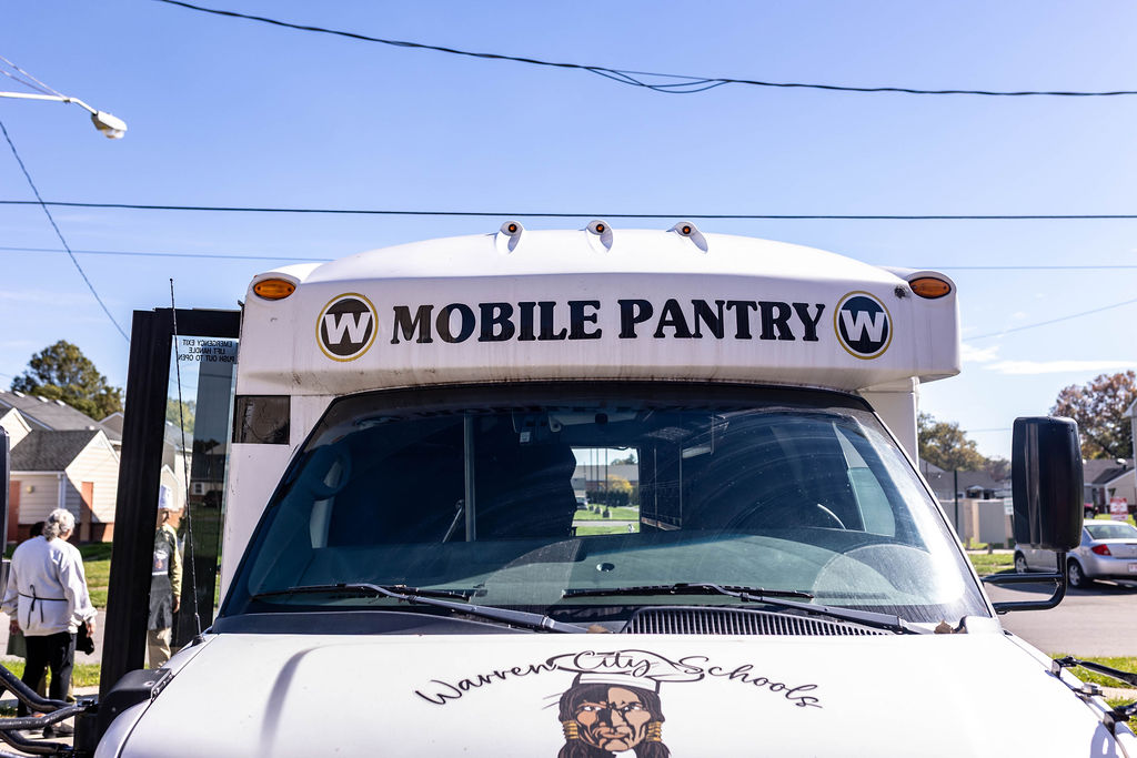 The district’s new Mobile Food Pantry rolled into Trumbull Homes on Friday, Oct. 17, 2025. Several members of the school staff assisted dozens of individuals stopped by the pantry on wheels and took the opportunity to choose food and other items available to them at no cost. The pantry will be stationed in front of the community center.