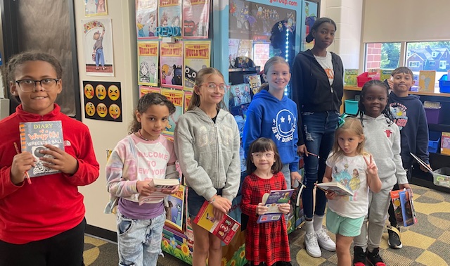 Students were given a pencil, bumper sticker and a book from “Inchy” our book vending machine!