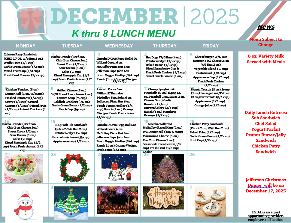December Menu You Might Also Like Attendance Incentive September 26, 2023 RESPECT January 11, 2024 Fundraiser Winners April 25, 2025