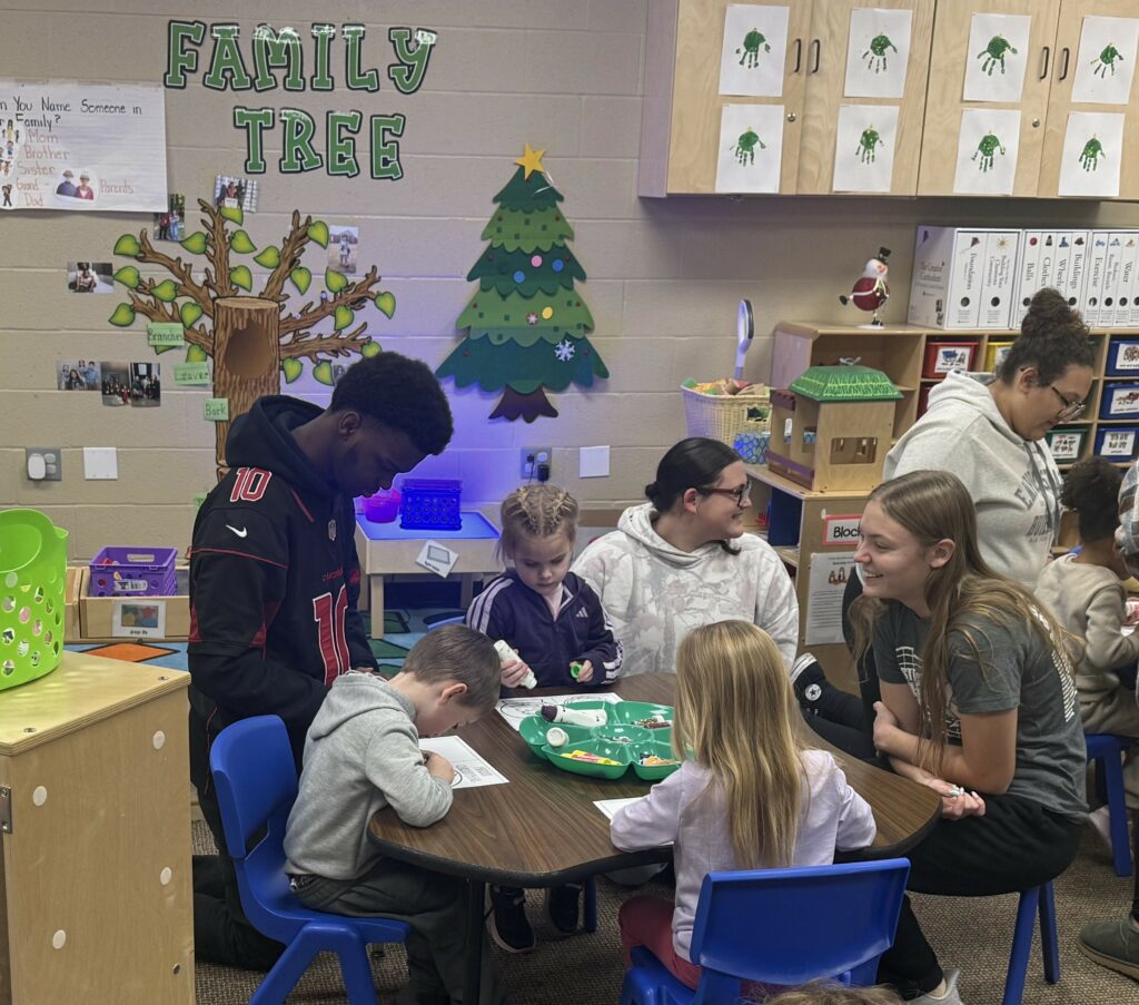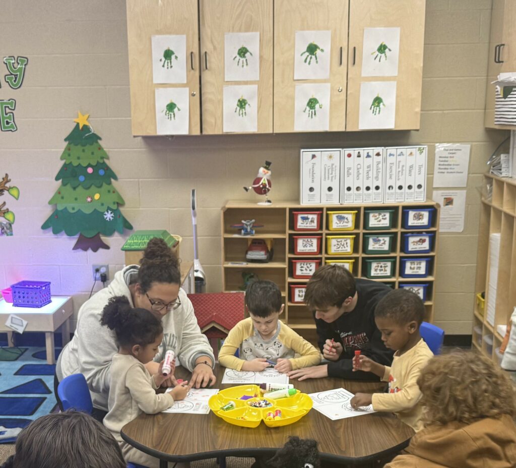 Ms. Allen’s Raider Day Seniors helping Ms. Hernandez’s preschool class with holiday crafts. This is the first part of an ongoing Senior-Preschool program for collaborative craft time allowing for the connection of our newest and most veteran WCS students. Students will be working together on other holiday crafts throughout the remainder of the school year.